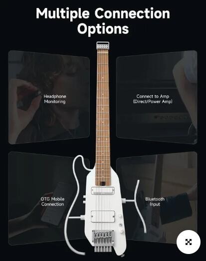 配件 : 便攜式琴盒 / 琴頸調整桿 / 監聽耳機 / 背帶 / 碳纖維Pick /USB-C線 / 導線 / 琴布