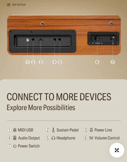 ● 88 鍵漸進式配重鍵盤模仿三角鋼琴的觸感,提供動態且精緻的音樂表現力